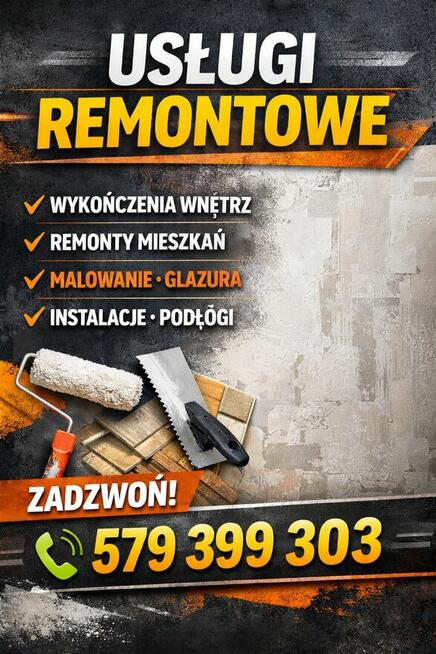 Witam Serdecznie wykonuje usługi remontowo-budowlane,Remonty Mieszkań , malowanie, szpachlowanie, tynki gipsowe, ...